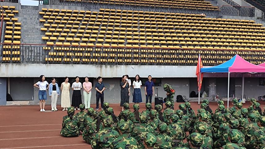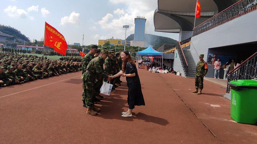 刘璐书记首先代表学院对军训承训教官的辛勤付出表示崇高敬意和诚挚感谢,感谢教官们为同学们上好大学生活的第一课,嘱托教官要严格要求,不仅要磨砺同学们的精神意志,更要增强同学们的国防观念。