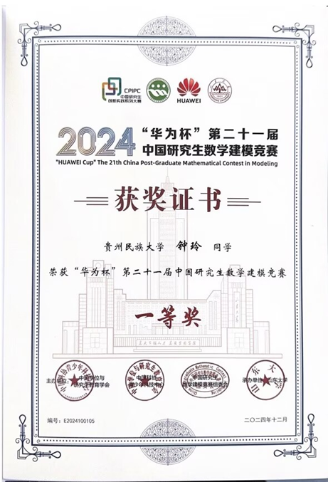 在2024年“华为杯 第二十一届中国研究生数学建模竞赛”中,由248cc永利集团蔡静老师指导的由钟玲、罗树霞、林勉三位同学组成的团队,在大赛中表现优秀,荣获国家级一等奖,为学校争得荣誉,充分展现了永利集团官网248cc永利集团学子风采,此外,本次大赛学院还获得了5项国家级三等奖的优异成绩。据悉,此次共有来自国际和全国各省、自治区、直辖市、特别行政区共521个研究生培养单位的20247名研究生(含国际赛道)参赛。