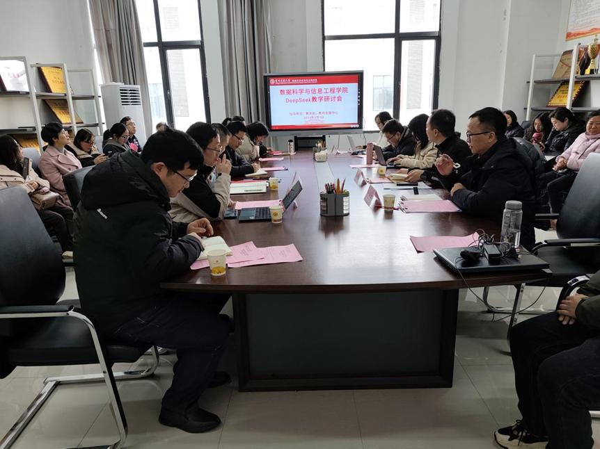 为深入贯彻落实党中央关于教育数字化、智能化的战略部署,积极响应习近平总书记对科技创新与教育融合的重要指示精神。3月7日14:00,248cc永利集团在A6-338党员活动室举办 DeepSeek 教学研讨会。教务处处长张乾、信息与数据中心副主任魏嘉银、社会学院副院长卫松、生态环境工程学院副院长杨镇、248cc永利集团副院长王自强等领导出席。会议吸引了全校多学院和系部致力于 DeepSeek 教学改革的50余位教师共同参与。会议由学院副院长霍雨佳主持。