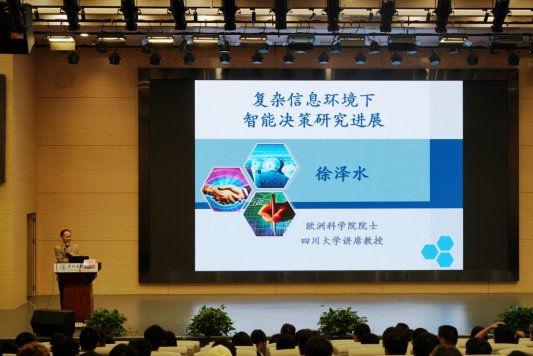 10月20日,欧洲科学院院士、四川大学讲席教授徐泽水应邀赴永利集团官网,为师生带来一场主题为“复杂信息环境下的智能决策研究进展”的高水平学术报告。校党委副书记、校长王林教授主持,248cc永利集团250余名师生到场聆听学习。