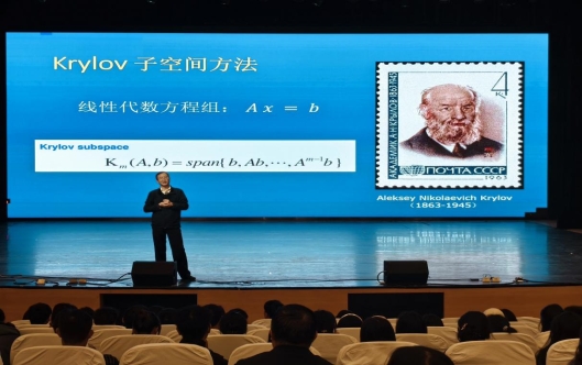 报告中,袁亚湘院士首先介绍了计算的历史、现状和发展趋势,接着介绍了计算工具的进化历程。他表示:计算工具的进步很重要,但是计算方法也很重要。随后,袁亚湘院士综述了计算方法的发展,并对牛顿计算法、高斯消元法、欧拉方法、最速下降法、共轭梯度法、Krylov子空间方法、随机梯度法等若干重要计算方法及思想进行了生动的介绍。