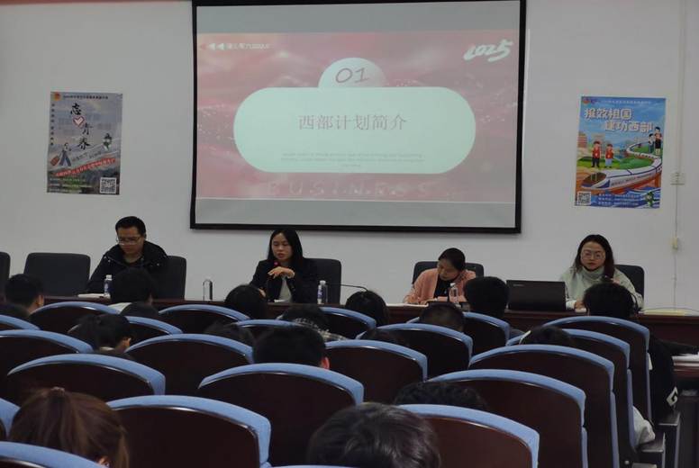 动员会上,老师们分别从不同维度展开指导:党委副书记赵孝梨重点解读政策保障与选拔流程;团委负责人赵静系统梳理了西部计划报名全流程,从线上系统填报、材料审核要点到选拔标准说明,分步骤拆解关键环节,确保在场学子清晰掌握报名流程;就业指导安敏老师以分析“基层经历对公考、企业招聘的赋能效应”;优秀指导教师张宏梨则从安全保障、心理调适角度提出实用建议。