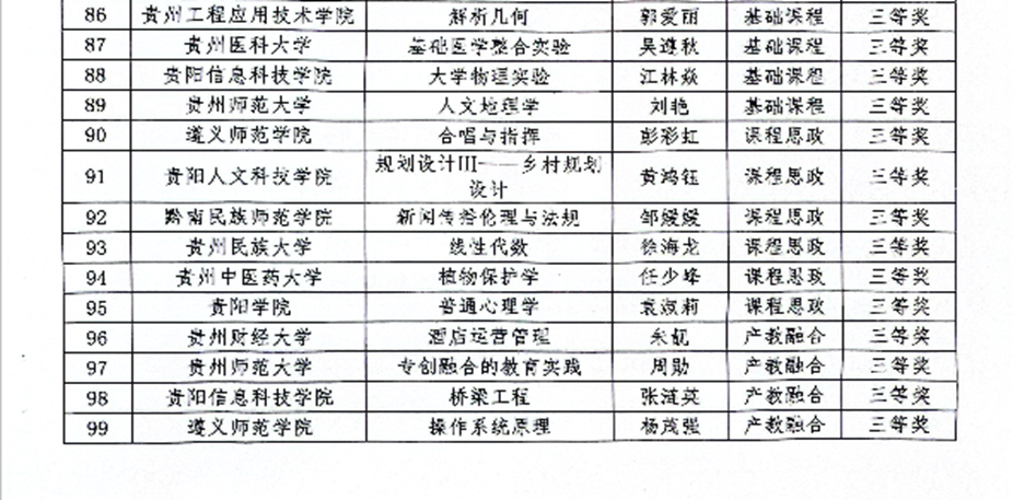 我院《线性代数》课程教学团队荣获第四届贵州省高校教师教学创新大赛课程思政组三等奖。