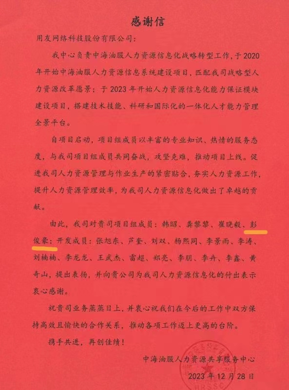 学院软件工程系2020级冉思龙、申豪、彭俊豪三名优秀学生在北京实习期间因表现出色,分别受到了国家广播电视总局、北京市教育资产与财务管理事务中心以及中海油服人力资源共享服务中心的高度肯定和充分赞扬。他们凭借扎实的专业知识、良好的团队合作能力和出色的沟通技巧,出色地完成了实习任务,展现了学院培养的优秀学生的风采。